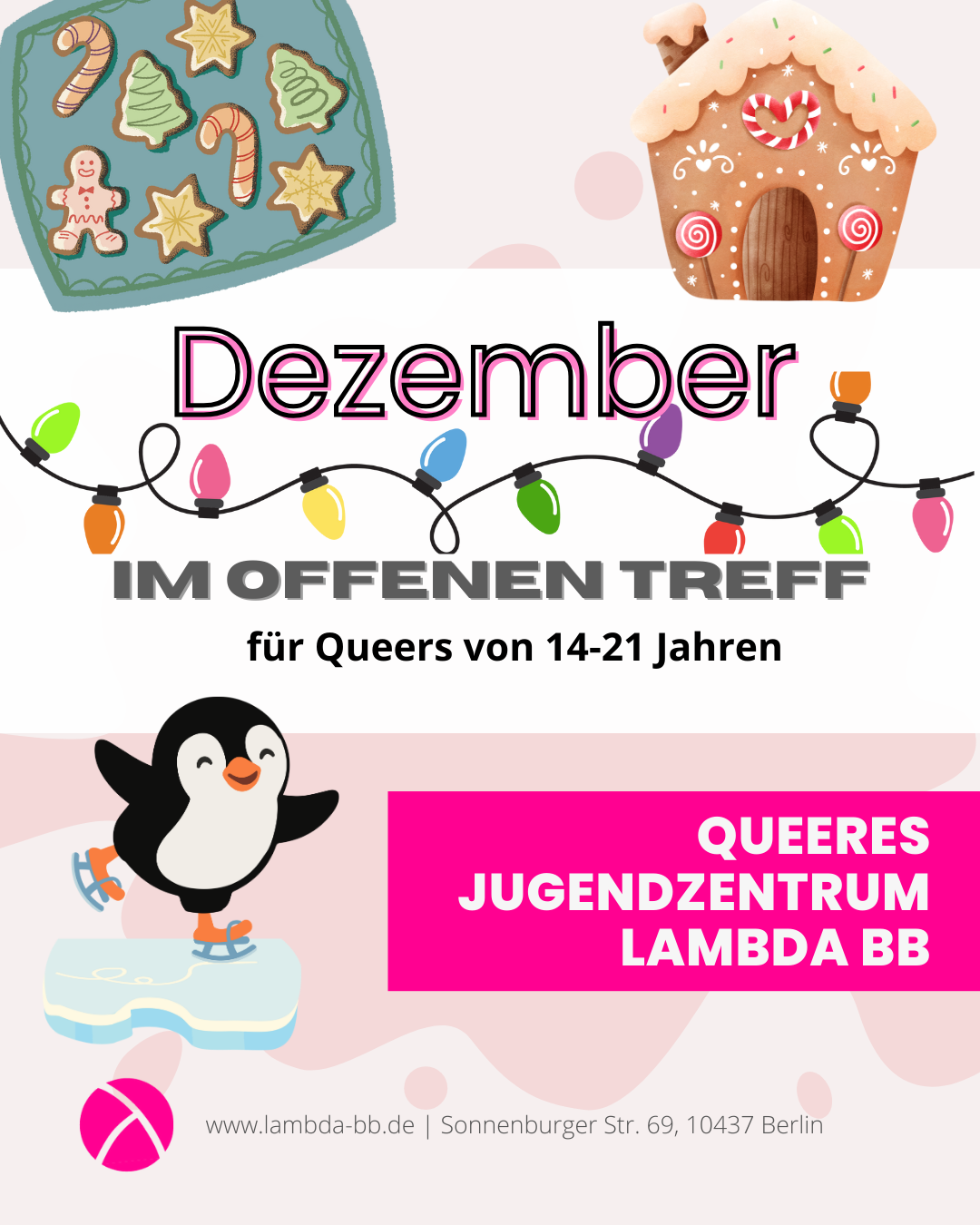 …das erste landesweite queere Jugendzentrum in Berlin für junge Lesben, Schwule, Bi-, Trans*, Inter* und Queers zwischen 14 und 27 Jahren sowie für interessierte Jugendliche, Offenen Treff, Beratungsangebot, Jugendgruppen und -projekte. Diese interaktive Plattform soll Euch zum Stöbern, Austauschen und Mitmachen einladen!